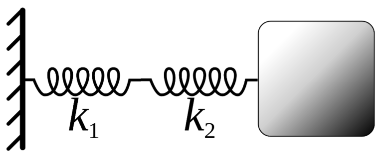 When springs are in series, we can replace that with a single spring with a single spring constant. To do this, we invert the sum of the inverses like we did for the bolt.