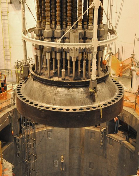 One of the most watched parts of a refueling outage is the lift of the reactor head. After everything has been cooled to well below boiling, and the RCS has been drained slightly (just below the head), the reactor head is loosened, and lifted. It’s likely the heaviest lift that any Nuclear Plan will do in a given year.