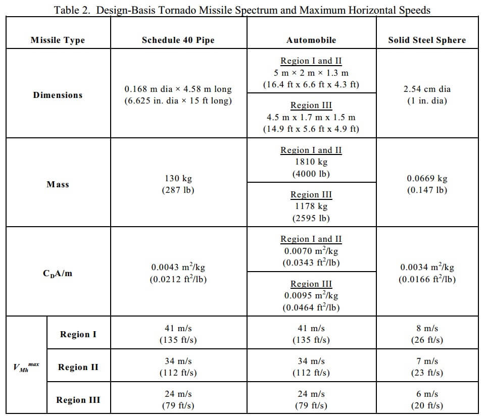 Bechtel wrote BC-TOP 9A that was approved by the NRC for evaluating tornado driven debris, and the associated impacts. The Report describes in results of actual test data, and outlines a conservative method for designing tornado missile barriers.