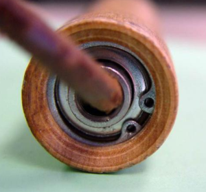 It is a great way to stay in shape. But while you are doing a hop, skip, and a jump to your favorite ditty, remember that in this model the fastener question was how to retain a bearing in the handle in the most efficient way. Engineers responded with an internal retaining ring. Machine a simple groove on the inside of the wooden handle, compress the lugs, and “snap” the ring into the groove. That is all it takes to install the ring and easily remove it when it is time to replace the bearing.